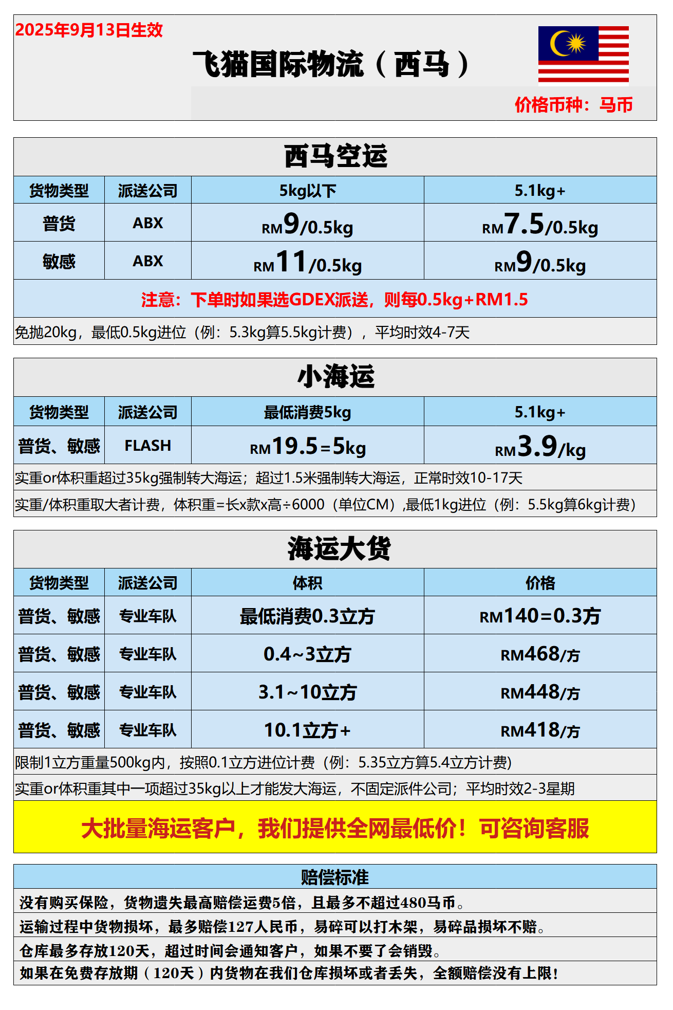 * 默认体积重与实重比较,取较重者计算运费,免抛/半抛优惠请参考报价说明。